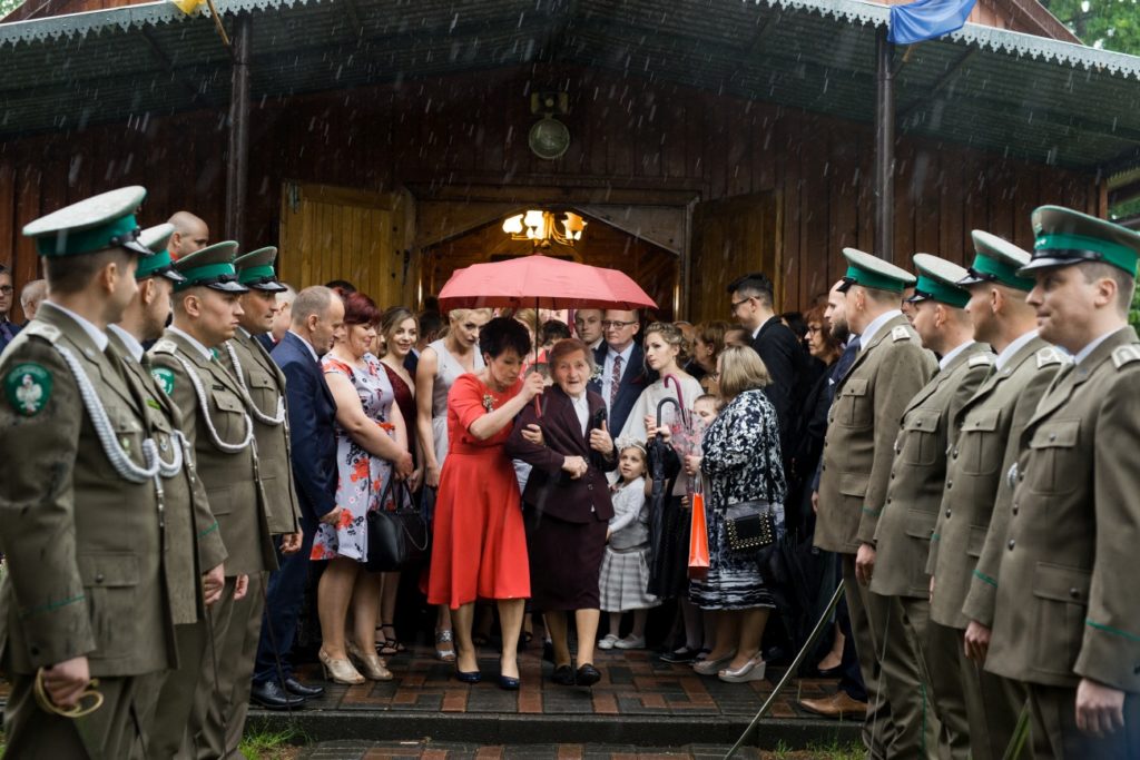 Państwo Młodzi opanowali stres i chłonęli każdą sekundę z tego wielkiego wydarzenia. Zaraz po ślubie pokonali szpaler utworzony przez kolegów Radka.