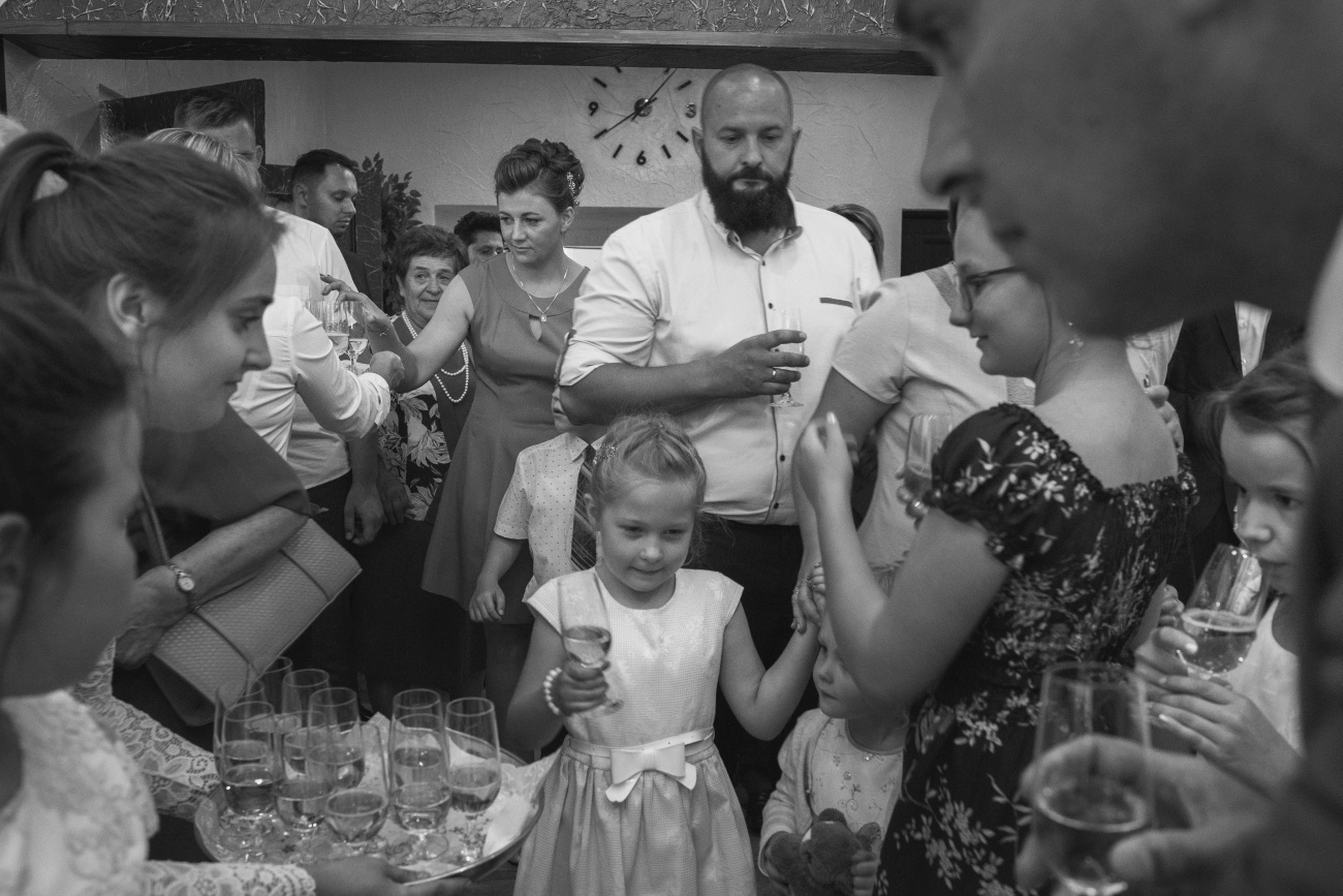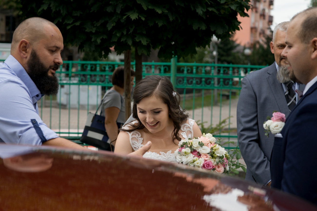 Młoda Para zdążyła jeszcze osłodzić wódkę i zaraz po tym wraz ze wszystkimi gośćmi została zaproszona na podwórko restauracji, gdzie czekała niespodzianka, przygotowana w tajemnicy przez świadków.